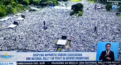 “We actually want to do the rally for peace in Quirino Grandstand to cause less disturbance and not cause heavy traffic,” said anchor Gen Subardiaga said. “Please do not get angry at us if the area [around Liwasang Bonifacio] becomes filled with people and vehicles and cause heavy traffic.”