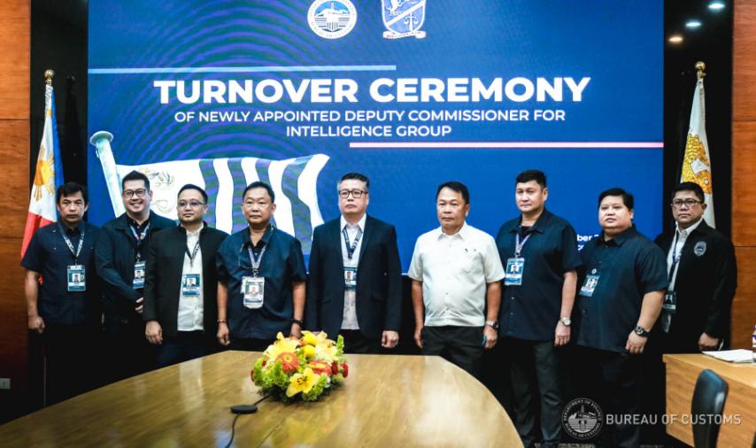 Also in photo are (from left): Jeoffrey Tacio, former IG Officer-In-Charge and Director, Customs Intelligence and Investigation Service (CIIS); Assistant Commissioner Atty. Vincent Maronilla (PCAG); Deputy Commissioner Atty. Vener Baquiran (RCMG); Acting Commissioner Yogi Filemon Ruiz; Deputy Commissioner Edward Dy Buco (AOCG); Atty. Kriden Balgomera, OIC, MISTG; and, Atty. Gilbert Ordoña, OIC Director, ESS.