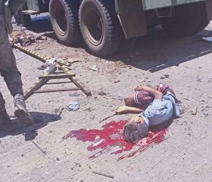 Among the civilians killed was a child of still undetermined age and identity whose head, based on photos, was blown off.